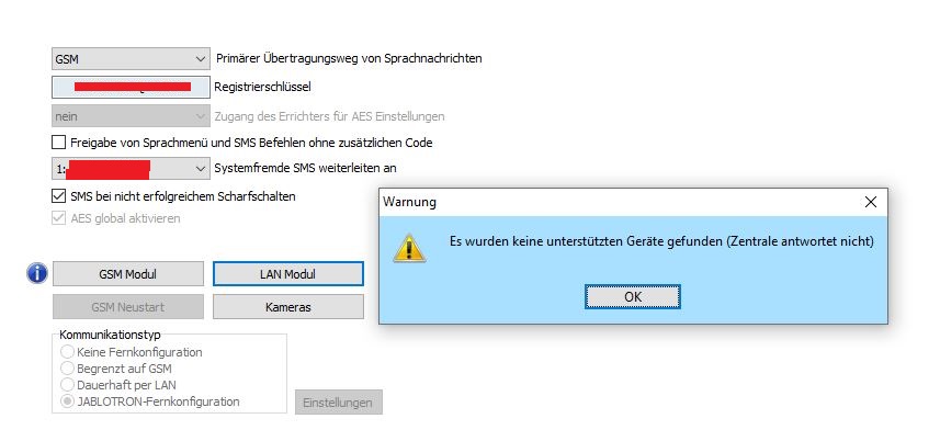 ich besitze schon seit einiger Zeit eine Jablotron 101K Alarmanlage und ärgere mich schon seit "immer", dass ich mit der Software "F-Link" mich nicht via LAN auf die Anlage verbinden kann. Nun ärgert es mich aber schon so sehr, dass ich dies endlich gelöst haben will ..) Die Anlage selbst ist mit dem Netzwerk verbunden und erhält vom DHCP Server eine IP-Adresse zugewiesen. .) Die Anlage ist netzwerkseitig durch einen PING erreichbar. .) Wenn ich lokal mit einem USB Kabel mit der Anlage verbinde, sehe ich auch die zugewiesene IP-Adresse und kann auch den "DNS-Test" erfolgreich durchführen. Netzwerkseitig sollte dies denke ich, kein Problem sein. Hat wer eine Idee, warum ich mich trotzdem nicht verbinden kann? Ich starte die Software, möchte mich verbinden, der blaue Balken wird geladen und auf einmal läuft der Balken wieder retour. Meldung: "IP-Verbindung über YTUN Protokoll (Warte auf Antwort) ... nach einigen Sekunden die Fehlermeldung: "Es wurden keine unterstützen Geräte gefunden (Zentrale antwortet nicht). F-Link Version v.2.4.0 ist installiert, hat aber auch mit älteren Versionen nie geklappt. Das Interessante ... der Alarmanlagentechniker welcher die Anlage installiert hat, kommt von seinem Office aus auf die Anlage. Ich kann mich auch von meinen Smartphone aus (mit und ohne WLAN) auf die Anlage verbinden, aber egal von welchen Gerät (PC oder diverse Notebooks) aus, F-Link möchte keine Verbindung aufbauen. Hat wer eine Idee dazu, woran es liegen kann? Wie wird die Verbindung der F-Link SW aufgebaut? ... Direkt über die lokale IP-Adresse der Anlage oder läuft die Kommunikation über die "Jablotron-Cloud"? Screenshots als Anhang anbei ... Danke vorab für eure Unterstützung, Liebe Grüße, Markus |