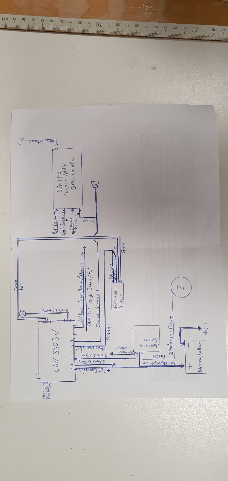 Habe ein Problem mit meiner neu installierten Ampire 3903V. Anlage habe ich selbst in meinem GLC installiert, und hatte erst den Anschein das alles funktionieren würde, aber dem war nicht so. Mit installiert sind , Neigungssensor, Jammingsensor, und auch noch der KEETEC SNIPER MAX. Habe das mit Ampire - Support abgestimmt. Merkte bald, daß die 3903V mit dem Serviceschalter nicht einzustellen war, da ich gerne den schilpton abstellen wollte. Alles probiert nach Anleitung und nach Video wie es Ampire es im Netz anbietet. Auch der Support konnte mir nicht helfen, man meinte es müsste gehen. Die Verkabelung nochmals (mehrmals) geprüft, nichts zu machen, bei der Einstellung kam ich nur in den ersten Schritt und wurde gleich mit einem Voralarm abgeblockt. Anlage ist ca jetzt zwei Wochen verbaut, und hatte vorgestern und gestern ein seltsames Erlebnis. Während der Fahrt hörte ich, wie sich die Alarmanlage scharf stellte, darauf gingen die Warnblinker an und weitere 30sec. folgte der Vollalarm und dieser ließ sich sehr schlecht abstellen. Fernbedienung (Schlüssel) funktionierte nicht, dann lag noch eine Blinkerstörung an. Da half nur die Sicherung der Alarmanlage zu ziehen, wenigstens lief bei meinem GLC wider alles normal. Habe das Modul zur Überprüfung zu Empire geschickt, auch wenn die meinen da wäre sicher nichts defekt. Meine Frage an euch habt ihr schon mal so etwas gehabt? Oder habt ihr eine Idee, oder könnt euch vielleicht denken an was das liegen könnte? Sicherlich werde ich jetzt erst mal warten was Ampire nach der Überprüfung des Modul sagt. LG Grüße Rüdiger Anschlussplan Nicht ganz drauf Nicht ganz drauf Jetzt |