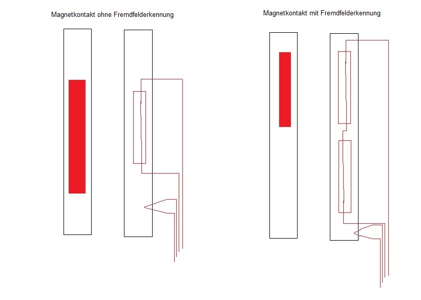 soll dieser Artikel die Grundsätzlichen Fragen zur Montage von Magnet & Riegelschaltkontakten verdeutlichen. Grundsätzliches Magnetkontakte dienen der Überwachung von Fenstern und Türen auf öffnen und oder Verschluss. Riegelschaltkontakte dienen der Überwachung von Türen auf Verschluss, sie werden von dem Mechanischen Schlossriegel betätigt. Öffnungsüberwachung? Dieser Kontakt wird verwendet um ein offenes Fenster oder eine offene Tür zu Melden. Im Scharfen Zustand der Einbruchmeldeanlage löst dieser Kontakt einen Hauptalarm aus. Montage: Montagebild eines Magnetkontaktes an Fenster und Tür Der Magnetkontakt sollte das Öffnen des Fensters oder der Tür frühestmöglich melden, dabei jedoch auch durchaus normale Schwankungen Tolerieren welche sich durch Temperaturunterschiede ergeben können (bis zu 10mm). Diese Kontakte sollten möglichst mittig am Element angebracht werden um auch beim Aushebeln der Bänder sicher zu Funktionieren. Bei Fenstern sollten Magnetkontakte an der Oberseite montiert werden, damit ein gekipptes Fenster sicher erkannt und geschlossen werden kann. Ein an der Unterseite des Fensters montierter Kontakt ist nicht ratsam, da die Gefahr besteht das Fenster zu "vergessen", ein gekipptes Fenster ist ein Offenes Fenster!! Es stehen sowohl Einbau als auch Aufbaukontakte zur Verfügung. Einbaukontakte sind nahezu unsichtbar, die Montage ist jedoch Aufwendiger, Aufbaukontakte sind einfacher zu montieren aber sind immer sichtbar. Bei der Montage ist die Verwendung nicht magnetischer Schrauben sehr wichtig, damit das Magnetfeld nich gestört wird. Magnetkontakte sind auch mit "Fremdfeldsicherung" erhältlich, dabei ist das Feld des Magneten genau auf den Kontakt abgestimmt. Dies erfolgt durch einen 2.in reihe geschalteten REED- Kontakt innerhalb des Magnetkontaktes. Aufbau von Magnetkontakten Verschlussüberwachung? Die Verschlussüberwachung dient der Erkennung von nicht VERschlossenen Türen oder Fenstern, im Scharfen zustand der Einbruchmeldeanlage löst dieser KEINEN Alarm aus, er Verhindert jedoch das Scharfschalten der Anlage bei nicht VERschlossenen Fenstern oder Türen. Verschlussüberwachung am Fenster Am Fenster wird der Magnet mit der Schubstange der Fensterverriegelung gekoppelt, somit ist sichergestellt das der Kontakt nur geschlossen sein kann wenn das Fenster Verschlossen ist. Man sollte sich nicht dazu hinreißen lassen den Verschlusskontakt als öffungskontakt zu verwenden, da die Bandseite ausgehebelt werden könnte, und damit eine sichere Funktion des Kontaktes nicht gewährleistet ist! Alternativ zu dieser Variante soll auch die Aufdruckmechanik nicht verschwiegen werden, diese besteht aus einer Federbelasteten Kunstoffzunge welche das Fenster im unverschlossenem Zustand soweit aufdrückt das der Öffnungskontakt das geöffnete Fenster Meldet. Die Aufdruckmechanik ist auch mit zusätzlicher elektrischer Rückmeldung erhältlich. Bild Aufdruckmechanik Riegelschaltkontakt Die Montage des Riegelschaltkontaktes erfolgt in der Tasche des Verschlussriegels.(im Türrahmen) Der Riegelschaltkontakt sollte so mintiert und eingestellt sein das eine Betätigung erst erfolgt wenn der Verschlussriegel Vollständig ausgefahren ist. Funktionsweise Riegelschaltkontakt Fortsetzung folgt..... (bei Interesse) gruss der Elektrickser Wer Rechtschreibfähler findet,darf sie behalten! |