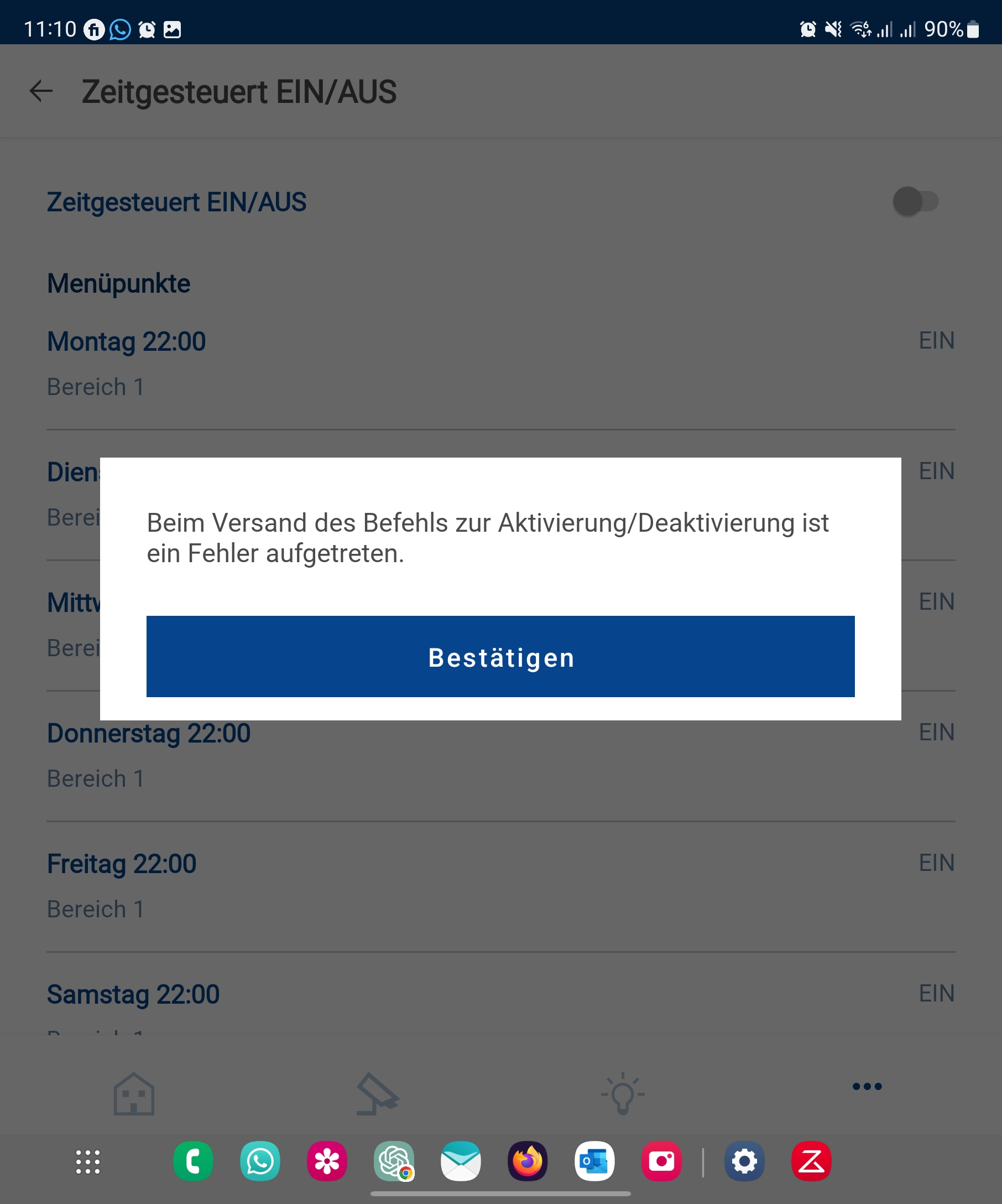 D22 Zeitgesteuerte Alarme lässt sich nicht mehr aktivieren in der App
