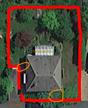 Aufgrund steigender "Besuche" (Auskundschaftung und auch Einbrüchen) bei uns in der Gegend möchte ich gern mein an sich mechanisch relativ gut gesichertes Haus mit einer Perimeterüberwachung versehen. Eine EMA hab ich bislang nicht, aber ansonsten die neuralgischen Punkte zusammen mit der Polizeiberatung abgearbeitet. Kellerfenster alle vergittert, Fenster so gut wie nicht erreichbar bzw. nur mit Leiter sowie mechanischer Sicherungen innen. Schwachpunkt ist und bleibt meine ebenerdige Terassentür. Sie besteht aus einer stabilen Rahmenkontruktion mit Mehrfachveriegelung sowie einem feststehenden Fensterelement. Tür als auch Fenster haben eine normale Doppelverglasung, die wohl im Zweifel eingeschlagen würde zum Einstieg. Zusätzlich haben beide Elemente normale PVC-Rolladen davor, die aber mühelos abgerissen werden können. Es sind "laberige" Laufschienen der Rollädenpanzer. An der Tür selbst werde ich noch Nachbesserungen vornehmen hinsichtlich Verriegelung. Mir geht es jetzt um die Perimeterüberwachung. In unserer Stadt gehen Nachts Menschen mit Taschenlampen zum Auskundschaften (wurden beobachtet), "Gaunerzinken" wurden an Gebäuden entdeckt, die Polizei jeweils zeitnah informiert. [attachment=5216] Im beigefügten Bild sieht man zwei Durchgänge, die ich gern mit Sensorik bestücken möchte, damit ein Perimeteralarm losgeht. Sensorik, die möglichst nicht bei Katzen und Waschbären auslösen. Was für Gerätschaften von welchen Firmen könnt ihr empfehlen? Kabel legen geht, Funk muss es nicht zwingend sein. Herzliche Grüße und schönes Fest. Jörg |