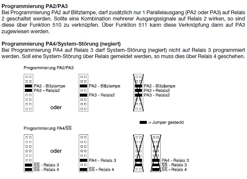 Der Sirenenausgang liefert ein Tonsignal, keine 12V, deshalb kann die Sirene nicht funktionieren: Hier nochmal die Jumperbelegung wegen der Blitzlampe: und die Programmiervarianten: Hast du die Sicherungen schon geprüft?: Sind die Signalgeber auf überwacht programmiert? Wenn ja steht eine Sabotage an? gruss der Elektrickser Wer Rechtschreibfähler findet,darf sie behalten! |