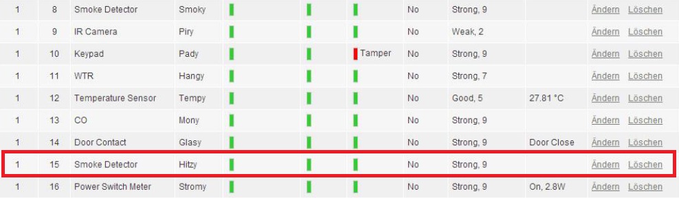 The Saint schrieb:Ich hab in Deiner Signatur gesehen, daß Du auch Hitzemelder hast. Ich habe auch welche, aber die werden in meiner XT2 nicht als "Hitzemelder", sondern als "Rauchmelder" angezeigt. Ferner zeigen die auch in der Sensorenübersicht NICHT die aktuelle Temperatur an. Im Handbuch der XT2 ist das aber so abgebildet ... Heißen in Deiner Sensorenübersicht die Hitzemelder auch "Rauchmelder", oder wirklich "Hitzemelder"? Und wird bei Dir die aktuelle Temperatur angezeigt (in der Spalte "Status")?