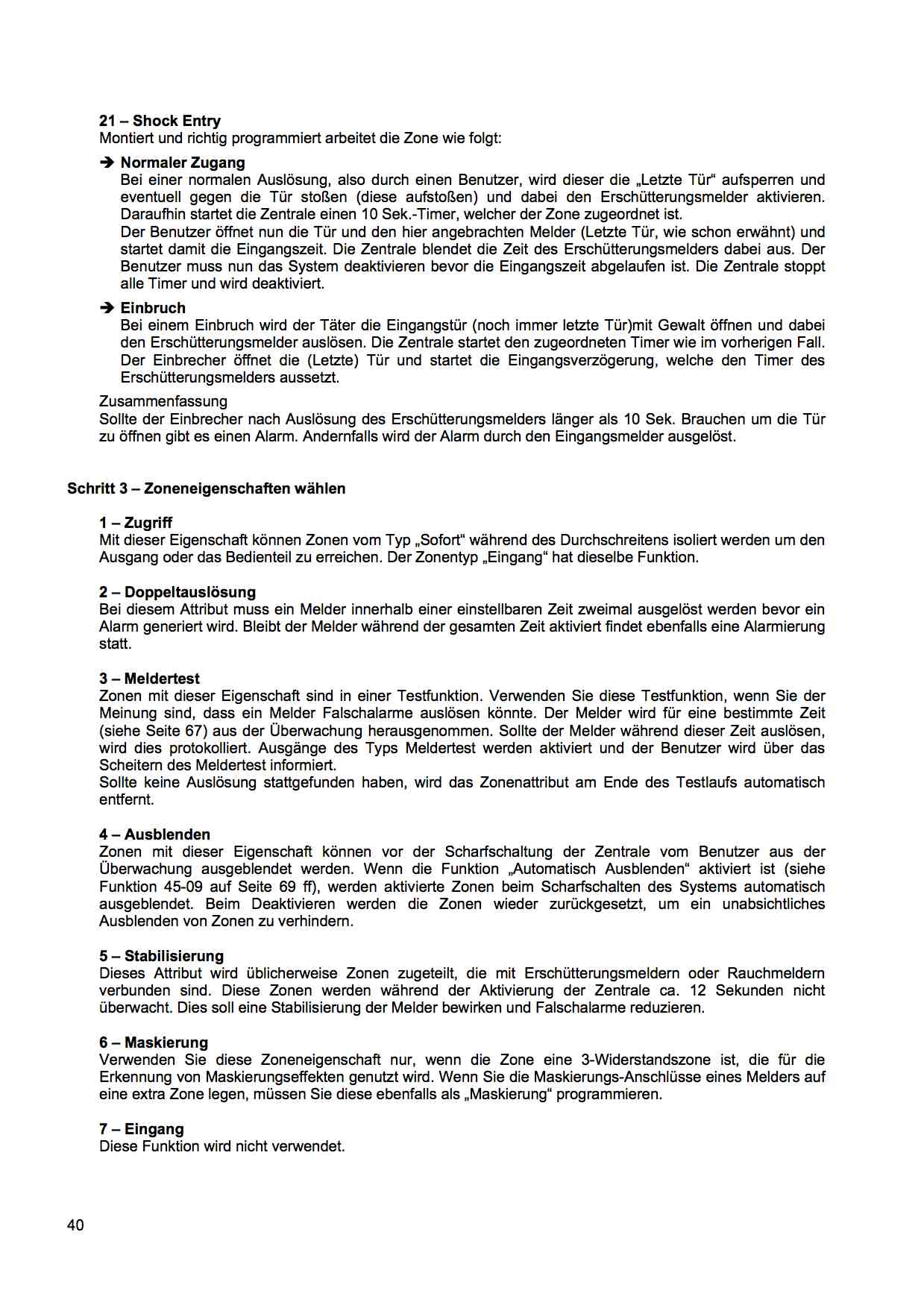 ![]() Das Problem liegt in der Zoneneigenchaft "Zugriff" begraben. Manual Seite 40 der LX beschreibt unter Zugriff den Zonentyp "1-Zugriff" als die selbe Funktion wie unter "7-Eingang". In der Zonenbeschreibung steht dann bei 7-Eingang: "Diese Funktion wird nicht verwendet. Das bedeutet für mich; nimm die 1-Zugriff und alles ist gut. ![]() Nur bei dieser Aktion geht es nur mit der "7-Eingang" bei Sofort Zonen. Beim Typ Eingang/Ausgang darf die Eigenschaft "Zugriff" ebenfalls nicht aktiviert werden. Gebt es zu; ihr habt es gewußt und wolltet mich nur grübeln lassen. ![]() Nochmals Danke für eure Denkanstöße. Auch dem Ritter Manfred