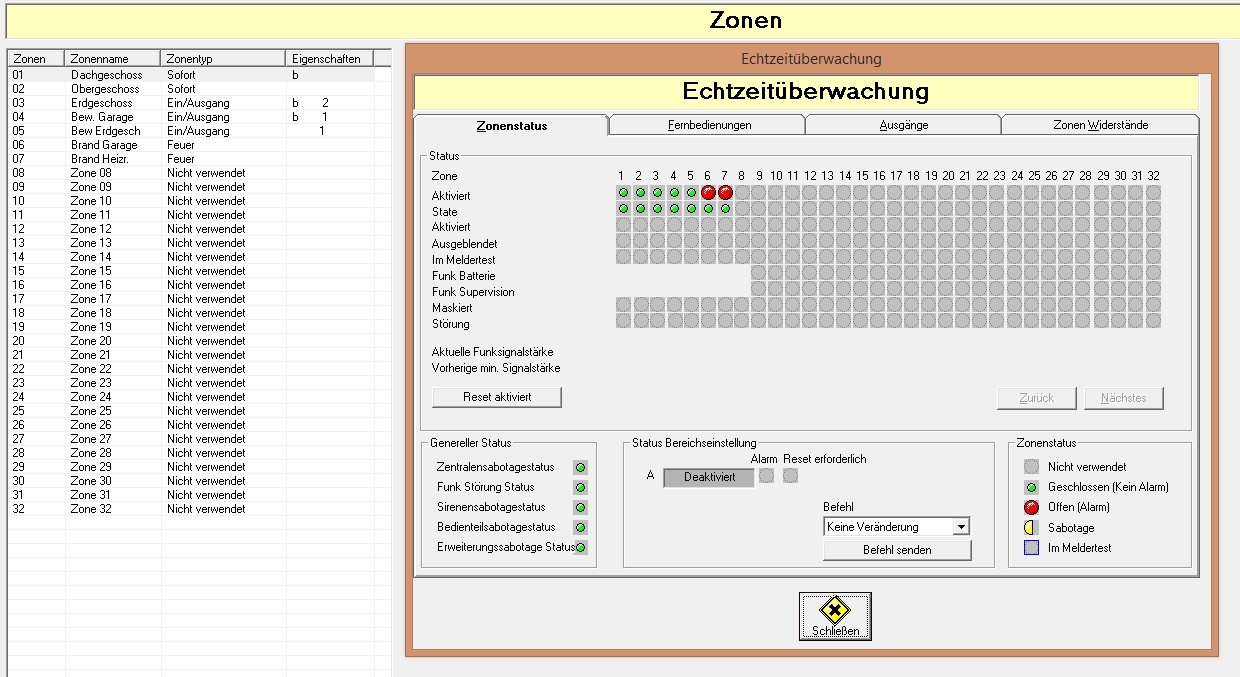 2) Sabo Kontakt Bedienteile: bin ich mir nicht mehr sicher, viell. habe ich diese falsch auf ext. Tamper angeschlossen, muss ich kontrollieren. 3) habe eine Abus Funk-Erweiterung, damit ich die Funk-Fernbedienungen nutzen kann und für einen Funk-Rauchmelder im EG. Funk-Fernbedienungen habe ich eingelernt, wie in der Beschreibung, funktionieren auch. Weshalb der Funk-Rauchmelder (Zone 9 der Erweiterung) und die Funkerweiterung in der Software aber nirgends aufscheint frage ich mich auch. Wo sollte man die denn sehen können. Darf ich dir meine Downloader-Datei schicken? (.exp) Wie kann ich dir die senden? |