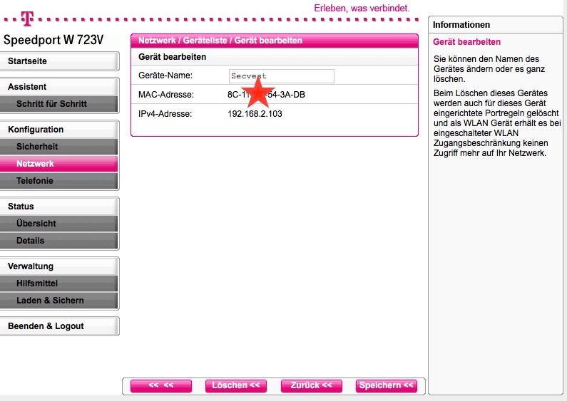 Die Secvest findet sich bei richtig eingestellten Parameter, automatisch im Server. Außerdem kannst du dem Speedport nicht vom Heimnetzwerk auf deine Secvest über den externen Link oder App zugreifen. |