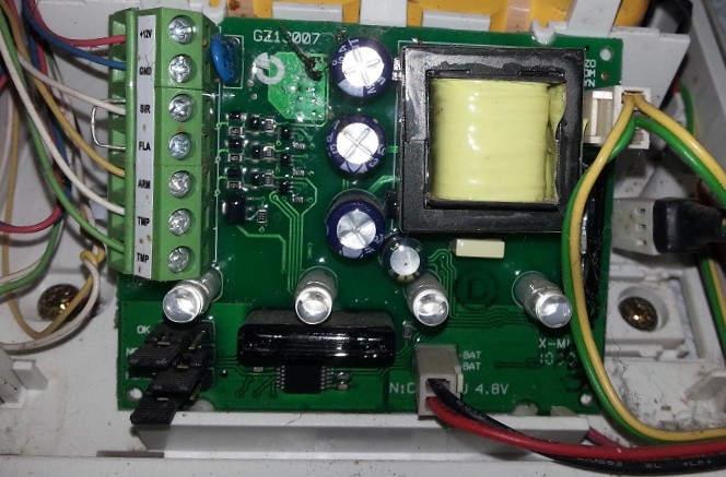 Abhilfe: Ausgang 4 auf der Grundplatine abklemmen und Messgerät ranhängen. Wenn alles geprüft wurde und in Ordnung ist, sollten da 1k stehen und nicht tanzen. Bei offenen Deckel der Sirene müsste der Wert eigentlich 2k betragen, bei unendlich würde sonst die Meldung "Sabotage Sabo Sirene" lauten.