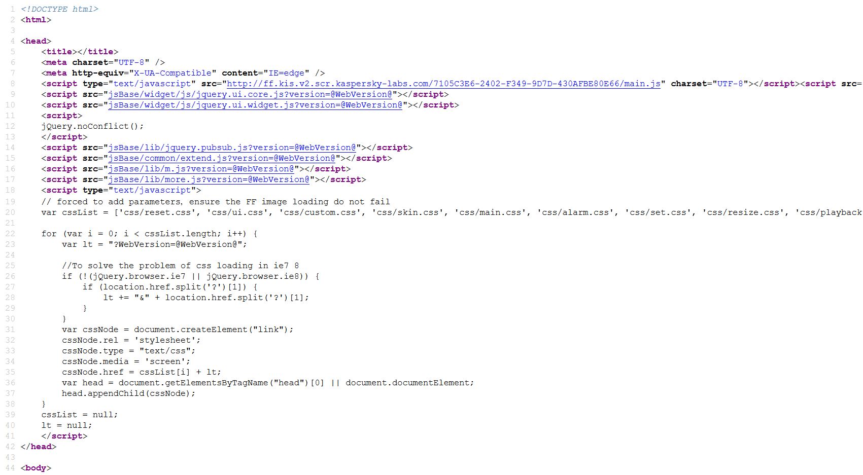 In den Headerzeilen befinden sich lediglich verlinkte Javasript-Dateien und man sieht, das die Seite nicht einmal einen Titel hat...