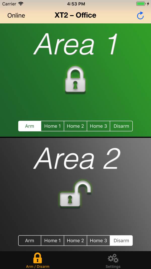 wir wurden kürzlich von einem Kunden mit einer XT2 Plus angesprochen, ob es nicht eine einfache App gibt, mit der seine Mitarbeiter einfach scharf oder unscharf schalten können, ganz ohne Schnickschnack. Da wir eine solche App nicht finden konnten, haben wir sie selbst programmiert und noch ein besonderes Feature hinzugefügt: Die einzelnen Areas lassen sich für den Benutzer auch blockieren. So kann beispielsweise einem App-Benutzer nur der Schaltung von Area 1 erlaubt werden, während gleicher Area 2 nicht schalten darf.