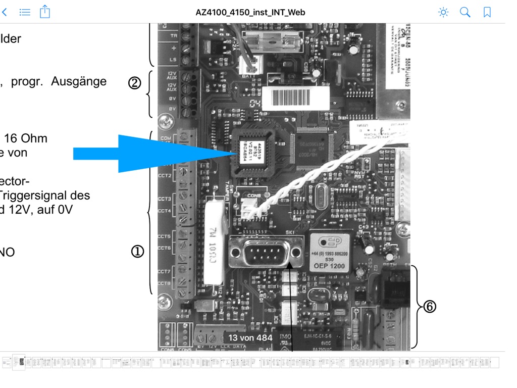 Die BUS Verbindung zu den Erweiterungen und den 3 Bedienteilen scheint zu funktionieren, da ich an allen BD arbeiten kann. Es werden auch alle Zonen (1-32) angezeigt und für die Zonen 1-8 auch die Widerstände. Der Gehtest geht auch...