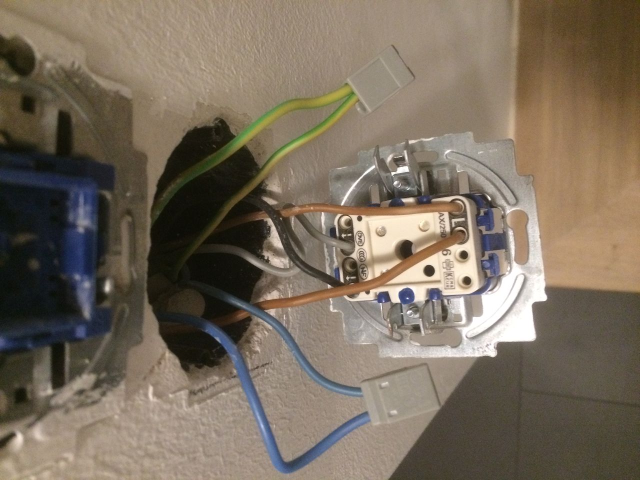 Anbei der Vollständigkeit halber noch das finale Bild vor Einbau (musste die Dose noch mit dem Meißel vertiefen). Ggf. etwas schwer zu erkennen, da ich nur schwarzes Kabel da hatte.