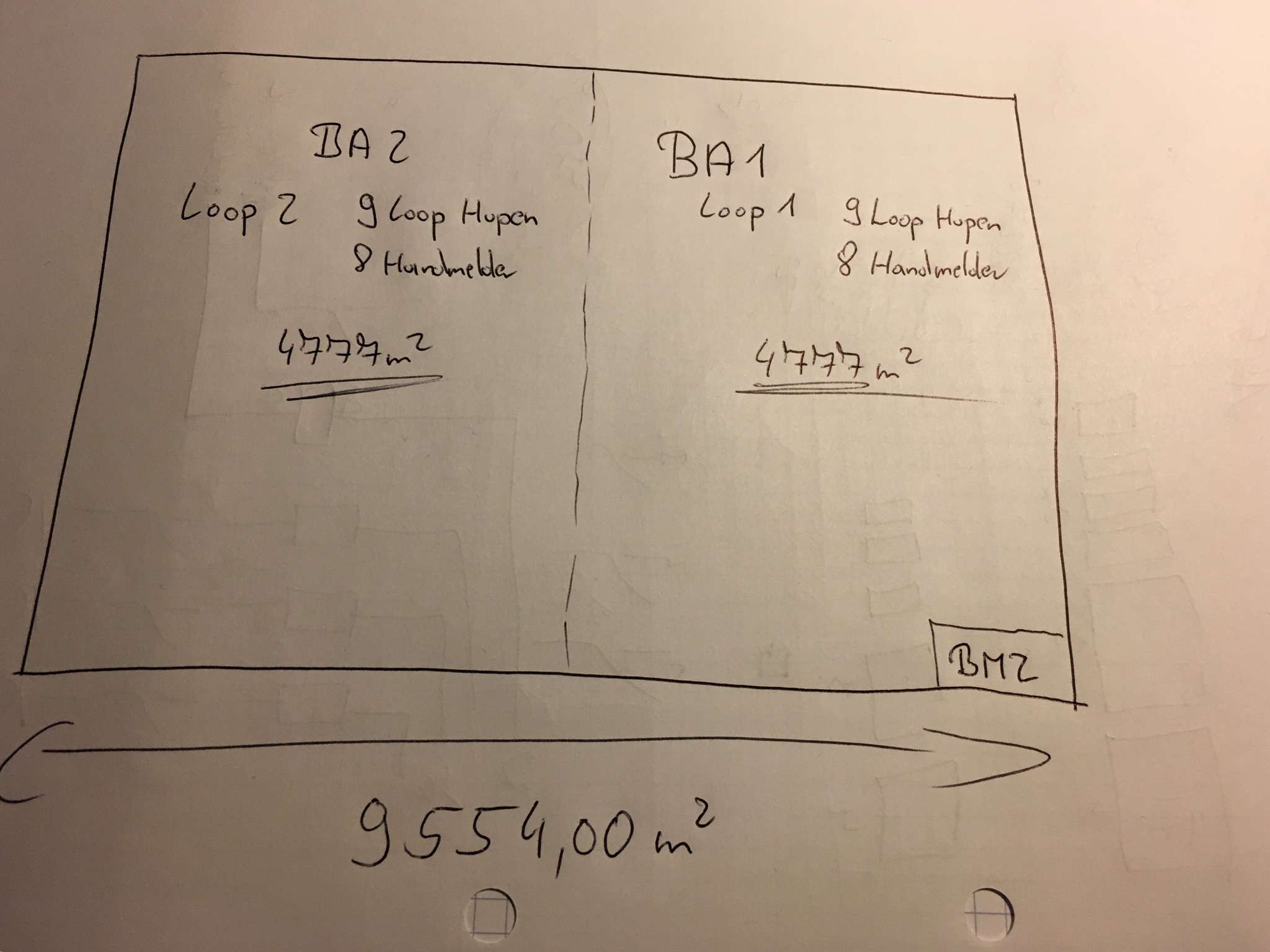 Hallo, wie schaut es bei einer offenen Halle mit 9500 Quadratmeter aus, wegen Loopalarmierung? Laut Vorschrift beträgt die maximale Ringleitungsüberwachung 6000 Quadratmeter, also sind es in der Halle 2 Loops. Wäre es erlaubt, die Alarmierung über je einen Loop zu betreiben? Sind dann pro Ring 47777 Quadratmeter der Halle, oder darf die Fläche pro Ring nicht größer als ein Alarmierungsbereich von 1600 Quadratmeter sein wegen den Hupen ?