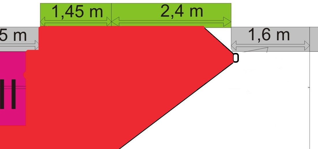Der rote Bereich ist der vom Melder erfasste Bereich.