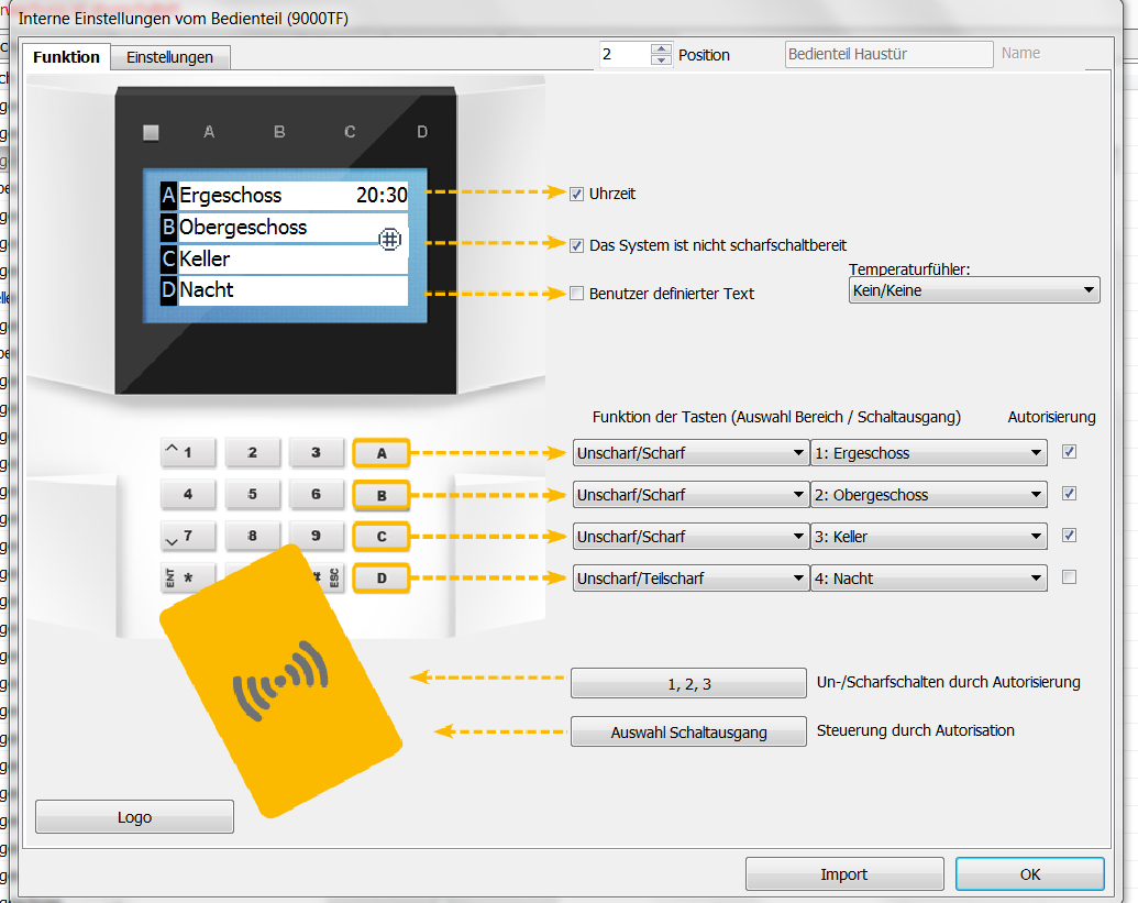 Durch anhalten des Chips würde ich gerne das System komplett Scharf oder Unscharf Schalten können.