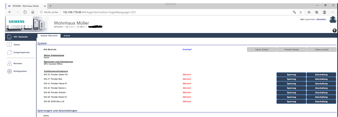 Die Anlage kam damals aus der Europlex-Übernahme durch Siemens, weit vor dem Verkauf der Sparte an Vanderbilt. Europlex saß in Irland und damit ist die Anlage für den englischsprachigen Markt vorgesehen, die das Thema Einbruchmeldeanlage deutlich gelassener angehen.