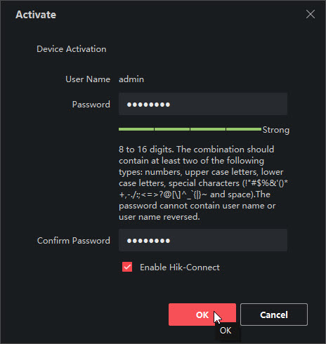 Das Passwortproblem liegt auch beim Hik-Connect.