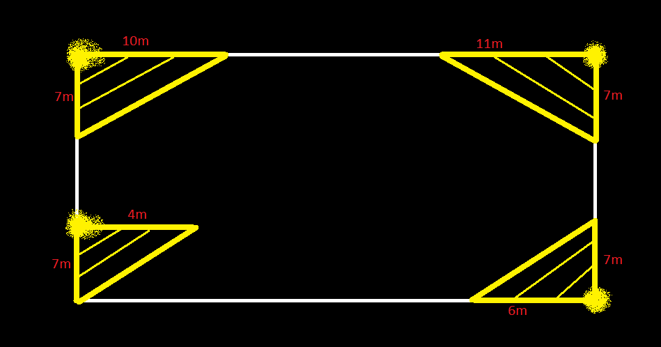 Bei den gelben Punkten sehe ich eine gute Positionierung der Kameras. Die gelben Linien stellen Wände mit Toren / Türen / Ein- Ausgängen dar. Meiner Meinung nach alles überschaubare Distanzen.