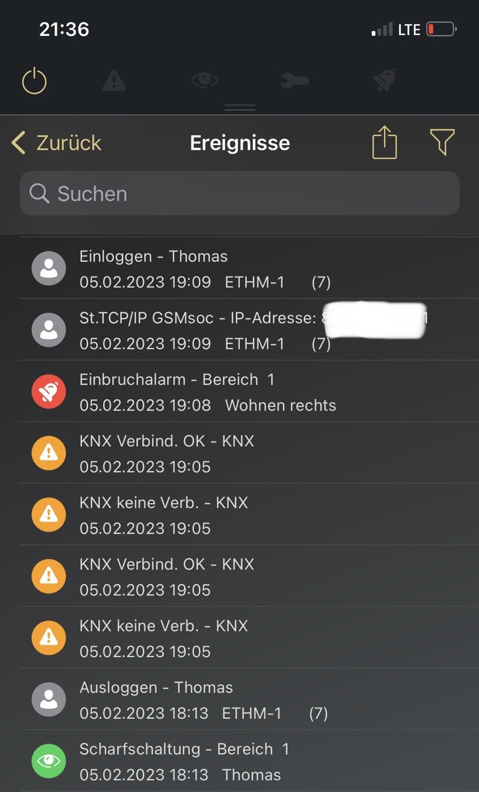 Am Sonntag Abend trat dann ein Fehlalarm auf.Obwohl dieses besagte Fenster geschlossen war. Ich war nicht zuhause- somit kaum Aktivität am Bus, alle Lampen aus etc.Die Fehlermeldung in der APP habe ich als Screenshot angehangen.