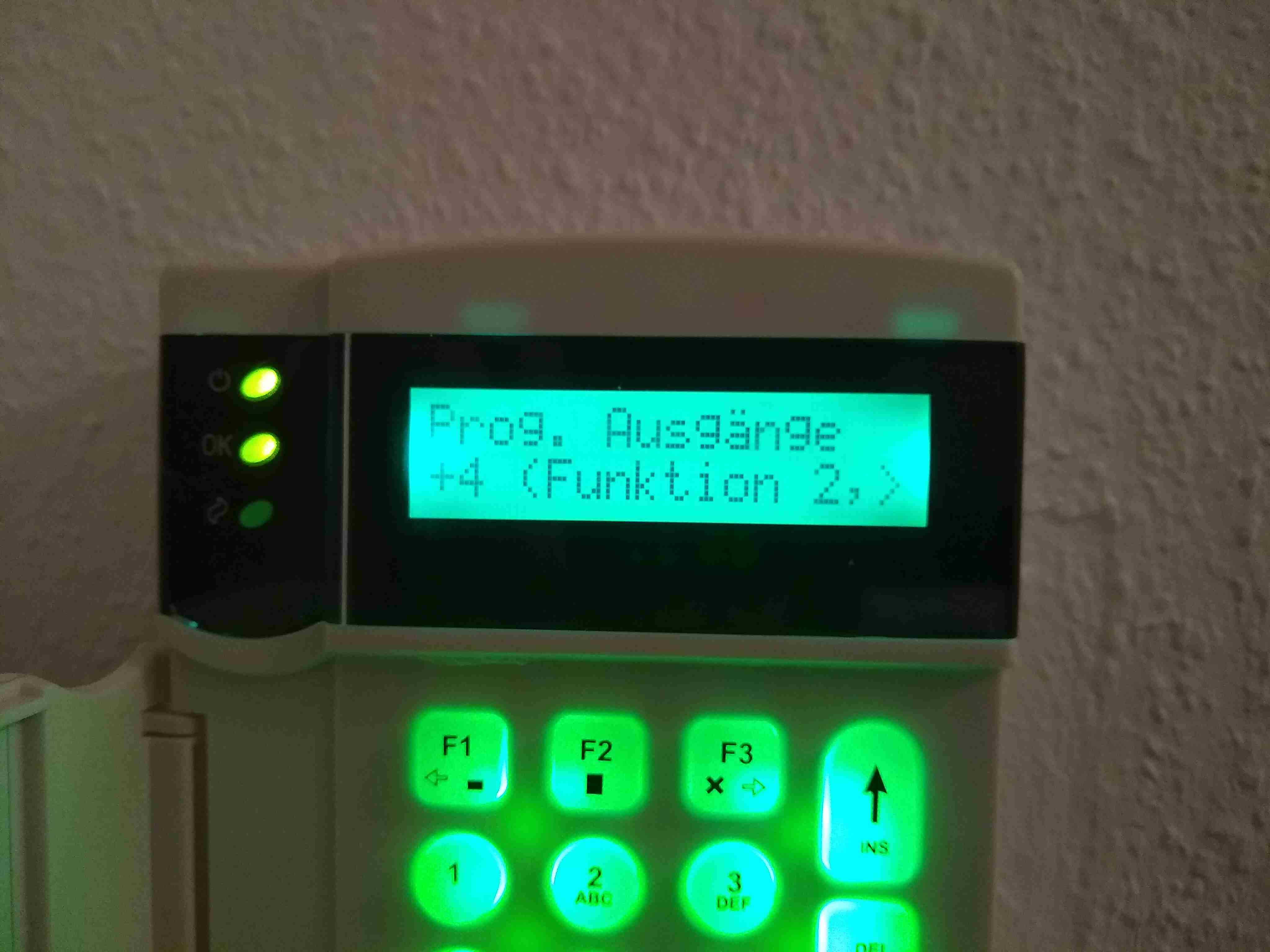 Ich nehme an, daß der eine Output hier auf 22 Disarmed state eingestellt werden müßte und der andere auf 46 Any alarm.