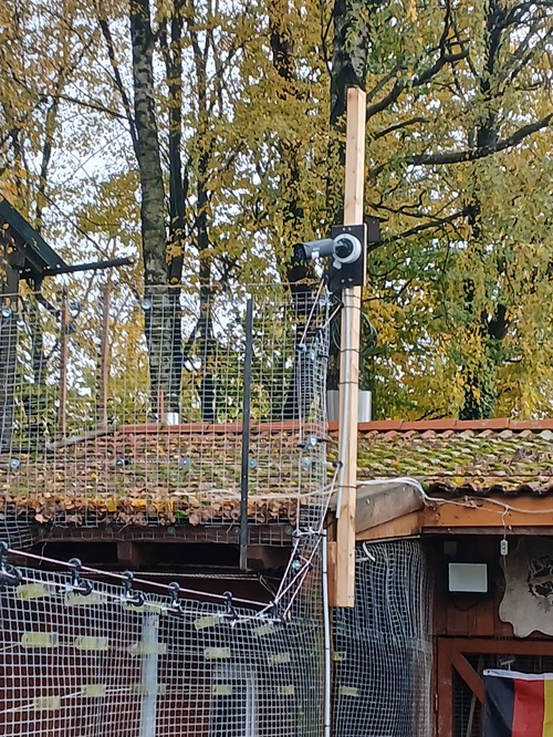 Sicherheitstechnik-Siegen hat sich unser Bärenhaus vor Ort angeschaut und überlegt wie wir im Inneren eine Kamera anbringen könnten. Die Spezialkamera mit Fish-Eye musste extra bestellt werden. In der Zwischenzeit habe ich ein weiteres Kabel verlegt und alles vorbereitet. Die Cam wurde schneller geliefert als gedacht, und heute habe ich das gute Stück montiert. Die Feineinstellung erfolgt noch durch Siegen in Remote.