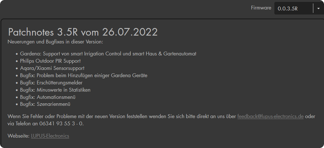LUPUS hat entschieden, die Firmware nicht mehr auf der Homepage zum Download anzubieten, da dies bei Kunden zu Verwirrung sorgt.