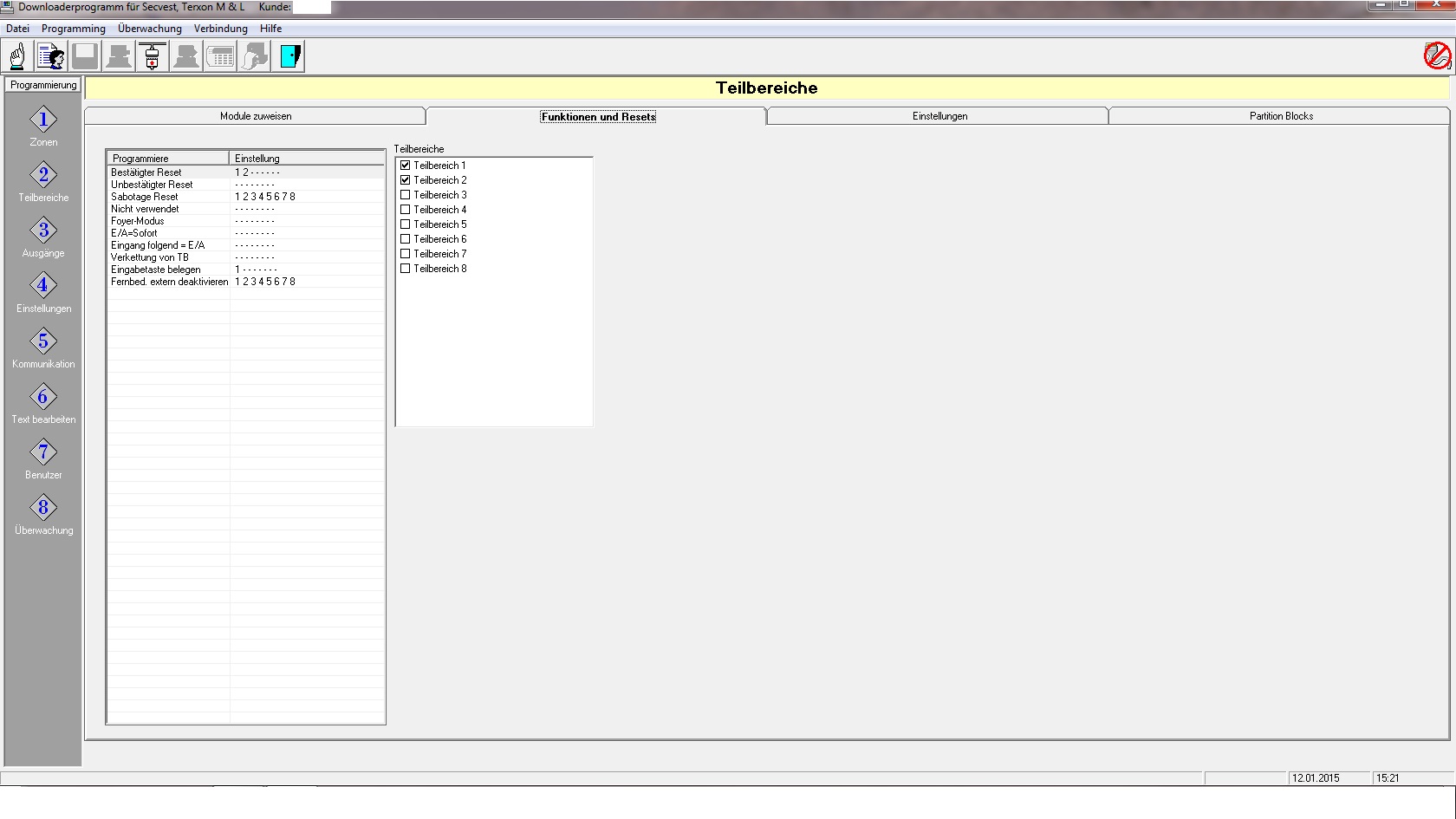 TB 1 oder 2 aktivieren? Häkchen und der jeweilige Teilbereich wird aktiviert.