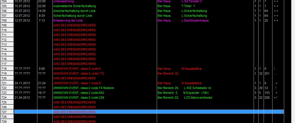 Die Zeitsprünge kommen daher, daß der interne Ereignisspeicher zeitlich überschrieben wurde bevor der über die Software ausgelesen wurde. Die alten Ereignisse waren bereits auf dem Rechner gespeichert, die jeweils aktuellen (mit Zeitsprung) per Software nachgeladen.