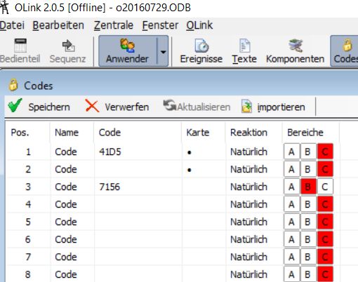 Jetzt hab ich aber bereits hier im Forum schon gelesen, daß einer angefragt hat, wie man mittels SMS einen Alarm auslösen kann. Ich finde diesen Thread aber nicht mehr, kann mich aber erinnern daß Timbaum geschrieben hat : einen Code anlegen, Teilbereich zuweisen (zB. C) und auf PANIK stellen. Wäre mir ja noch klar.