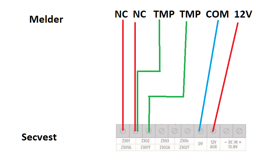 Klemme Z301 an eine der NC-Klemme des Melders. Die Klemme Z301/Z302 (also die zweite von links) verbindest du mit zwei Adern, wovon eine an die noch freie NC-Klemme des Melders und der andere an einen der TMP-Klemmen des Melders geht (entweder passen zwei Adern rein oder musst halt ein Stück Ader und ne Wago-Klemme nehmen). Die Klemme Z302 kommt an die noch freie TMP-Klemme am Melder. Die Klemme 0V der Secvest verbindest du mit COM am Melder. Die Klemme 12V AUX der Secvest verbindest du mit 12V am Melder -- * ich arbeite nach dem darlegten Plan, zur Konfiguration oder ob der Plan stimmt, kann ich nix sagen, da ich kein Abus-Installateur bin!! Es sind möglicherweise Konfigurationsänderungen erforderlich. (Pronomen: er/ihm) |