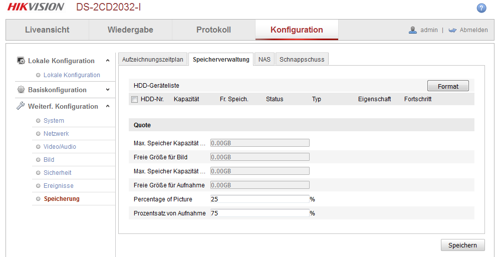(16-10-2015 22:12)safety4all schrieb: Wird der Speicher in der Speicherverwaltung jetzt dann automatisch erkannt und als Status "Normal" angezeigt? Hallo funkistnichtalles und ein hallo in die Runde, habe einen zweiten Benutzer WD My Cloud NAS für die zweite Kamera eingerichtet eingerichtet. Die erkennt das NAS aber nicht die Festplatte und zeigt wieder "nicht init." an. ![]() ![]() ![]() Formatieren geht ja nicht, sonst sind ja die Daten der erten Kamera futsch, oder? Übersehe ich etwas? |