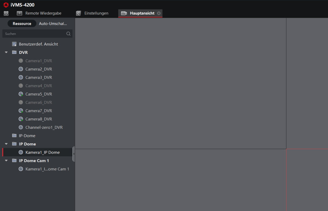 ich habe folgende Situation. Mein DVR verwaltet 7 Cams. Davon sind 2 IP-Cams, die im DVR bereits eingebunden sind: Sie laufen über die digitalen Kanäle D1 und D2. Über den DVR ist eine vollständige Verwaltung wie bei den Analogkameras möglich und sie werden auch auf Festplatte aufgenommen: In der iVMS-4200 Software kann ich auf den DVR zugreifen. Allerdings werden mir nur die analogen Cams angezeigt. Die Kanäle D1 und D2 (also Cam 1 und Cam 4) nicht: Die Cams sind jetzt per eigener IP im internen Netzwerk integriert. Über diesen Weg kann ich aber nicht auf die Aufzeichnungen des DVR zugreifen, sondern nur auf die kameraeigenen Speicherkarten, die in meinem Fall aber nicht vorhanden sind. Gibt es eine Lösung, per iVMS-Software auch auf die D1 und D2 Kanäle des DVR direkt zuzugreifen? Gerald |