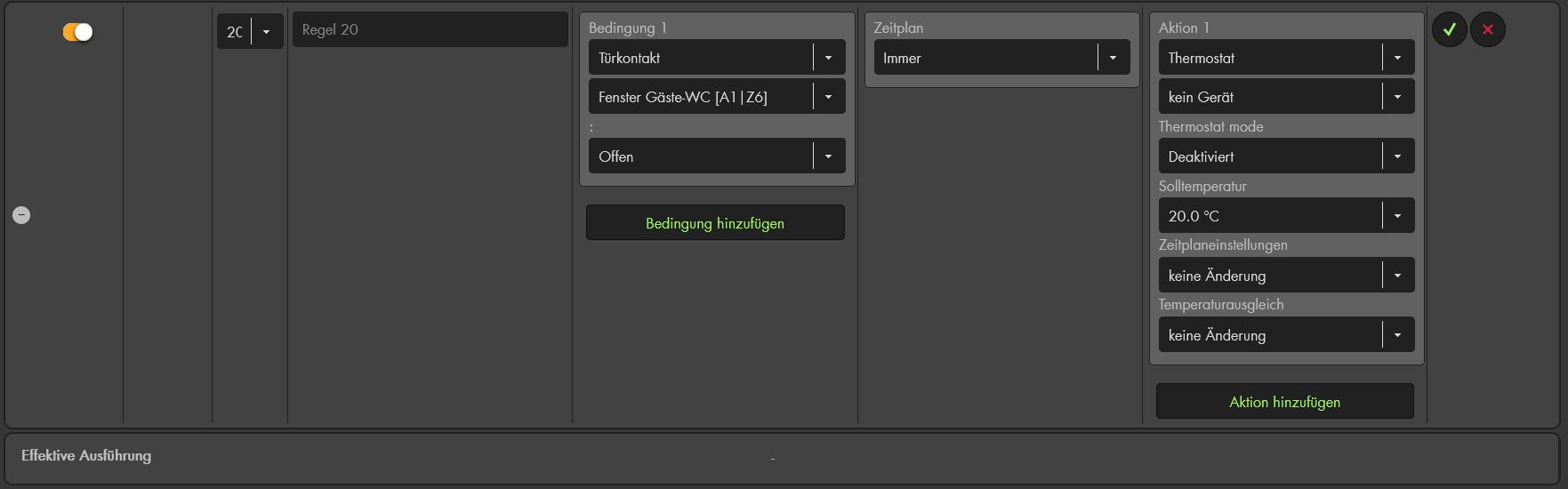 betrachtet man die Logik sollte also die Temperatur um 08:00 egal ob Fenster auf oder zu auf 20°C gestellt werden.