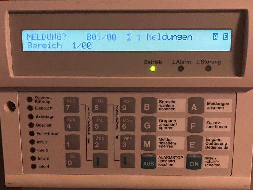 schade . Es sieht wohl so aus, als wäre irgendwas mit der Anlage falsch.Bei Anlegen der B Spannung kamen wie erwartet die Alarme (wie oben). Mit dem Code konnte ich auch den Summer abschalten. Da der Alarm ja wie schon gesagt von "Ik3 Auswerter kam" und die Anlage mir auch angezeigt hat "Alarm nicht löschbar" habe ich daraufhin die Revisionstaste 2-mal betätigt Ebene 5, Ziffern 5, 1, 6, angewählt Gesamt-standartprogramierung angewählt--- Anlage führt Reset aus. Allerdings kamen nach dem Reset die gleichen Meldungen, obwohl in der Standartprogrammierung ja steht "Bus 2 keine Teilnehmer". Auch nach wiederholten Reset (Standartprorgammierung) die gleichen Meldungen (eigentlich als wäre nichts passiert/resetet wurden).Außerdem kamen schon nach dem ersten Reset lauter andere Meldungen(Bilder). Tja ist ja schade :-( Falls noch irgendjemand Nerven übrig hat: Ich wäre immer noch am Start für Hilfe .Ansonsten falls das Ende nahesteht (die Anlage Schrott ist (vielleicht ja auch durch mich)): Tja, dann ist das halt so . War ein Versuch wert, so viel Geld hats dann auch wieder nicht gekostet. Aber ich bin mir wirklich nicht sicher, ob die Anlage jetzt schon kaputt war oder nur mein Wissen darüber (was dann schlussendlich hierzu geführt hat). Ich hab nach Prog Anleitung gearbeitet.Vielen Dank für die Hilfe, ist sehr wissensreich,interessant hier und man lernt immer was Neues (in diesem Fall ...aufjedenfall) .