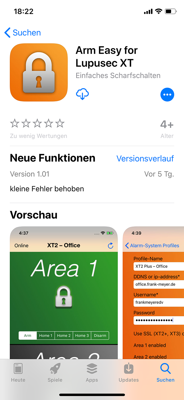 Es gibt so viele Möglichkeiten die Anlage scharf oder unscharf zu schalten: - über das Keypad - mit einer Fernbedienung - über den Webbrowser - über die Lupus-App - mittels Automation - über Alexa (wer das unbedingt will) - über das Internet mit VPN Wieso braucht es jetzt dafür noch eine weitere App. Gruß PeterF |