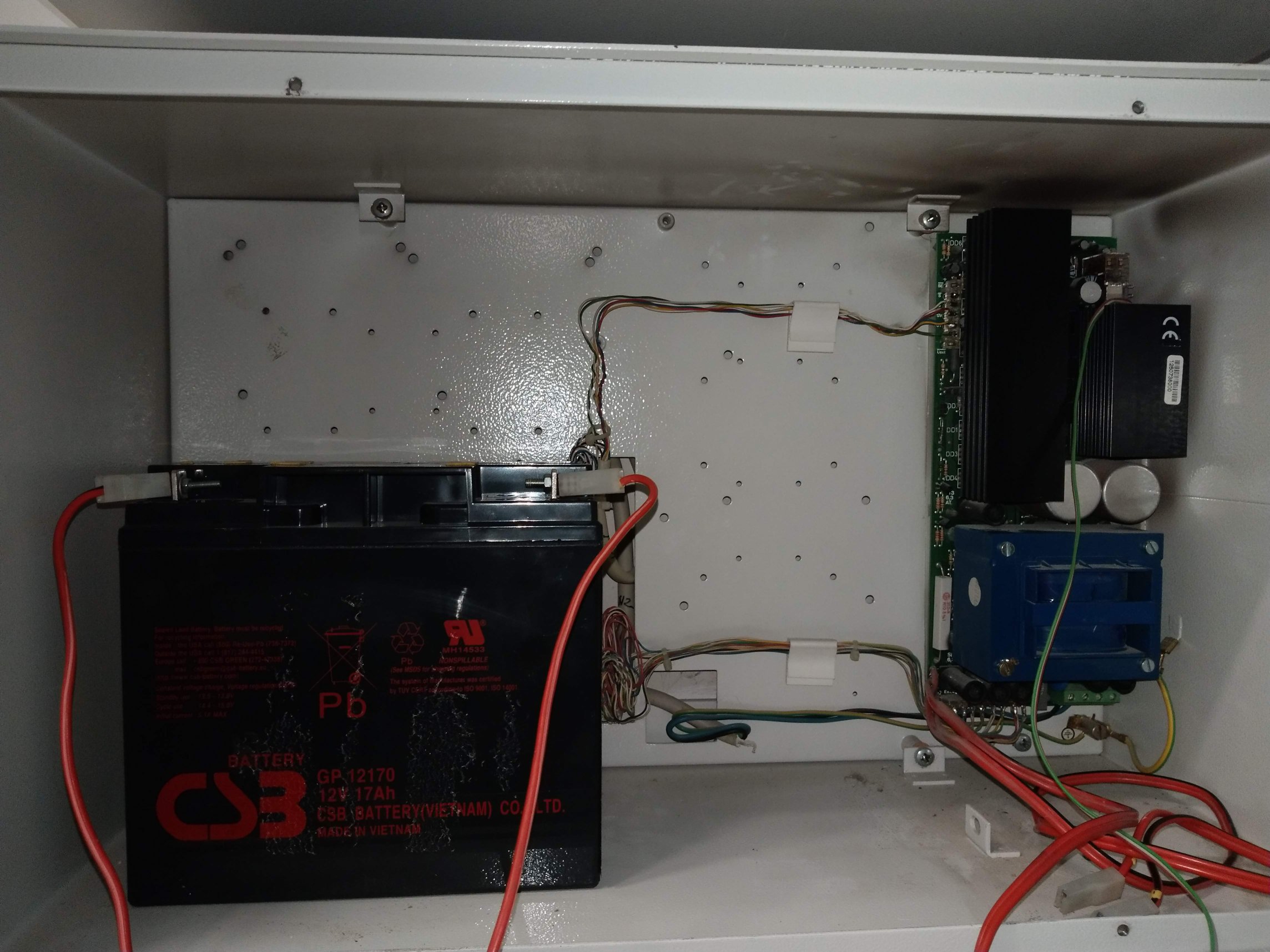 ich habe gemessen! Mit Akku überall 12,6V und 4,4V, Mit Netz dran 13,6V und an den Bauteilen 5.05V. Also scheint das auch zu funktionieren. Ich glaube, ich habe den Regler auch gefunden, ganz oben auf der Rechnerplatine. Scheint also (leider) alles an Spannungen da zu sein. Mäueklavier ist auch bemüht. Immer noch leeres Display und lautes Piepen am LC-Display. Auch keine Beleuchtung im Display, aber dafür die gelbe Systemstörung. Ich bin geknickt. Hier mal generelle Bilder, die Platine habe ich in Nahaufnahme jetzt verpennt, hole ich morgen nach. Gruß Klaus aus RE |