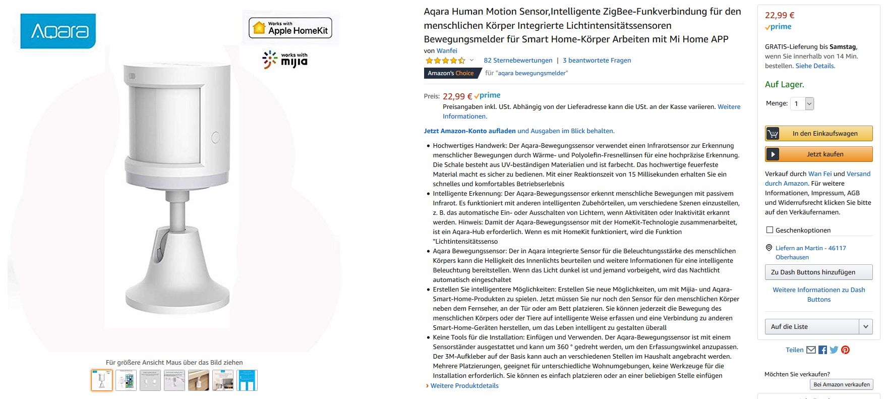 (19-03-2020 16:35)shortyHonk schrieb: Ich hatte jetzt zum Testen den Aqara BWM mit integriertem Lichtsensor bestellt. Lässt sich einbinden, wird allerdings nur als Lichtsensor erkannt. Hat der Sensor bei dir wenigstens als Lichtsensor funktioniert? Ich habe mir den Sensor jetzt mal bestellt und erfolgreich als Lichtsensor eingebunden (spart ja immerhin mehr als 40 EUR gegenüber dem Sensor von LUPUS). ABER: Der zeigt immer 0 LUX an. Hat er bei dir funktioniert? Hätte tatsächlich Bedarf an einer Steuerung über LUX-Werte, aber mit dem Teil scheint das nicht zu klappen. |