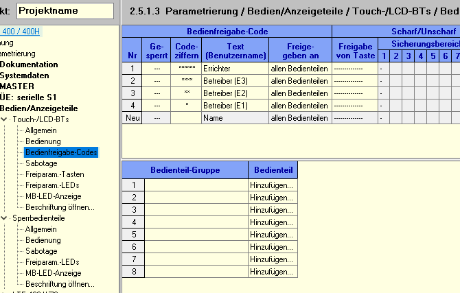 Da hat das eine mit dem anderen nichts zu tun. Den Code für die App musst du unter 2.5.1.3 eingeben. Hier kann man z.B. für die App einen Code für eine Ebene und einen anderen Code für eine andere Ebene eingeben etc. Das kann man auch für jedes Bedienteil oder jeden Benutzer einzeln einstellen. Wird z.B. verwendet Putzfrau darf Bereich XY nur Scharf schalten, nicht unscharf oder Benutzer XY darf nur scharf/ unscharf schalten, jedoch kein Menü aufrufen.....