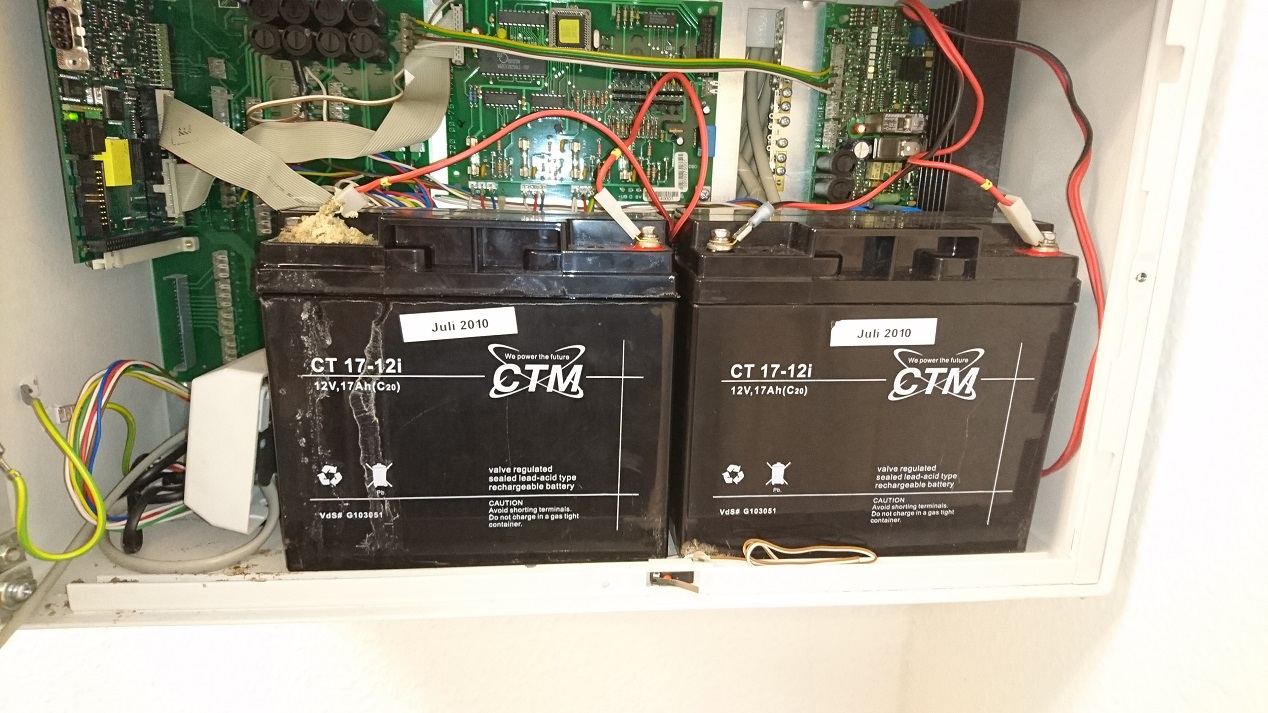 Da die Anlagen keine Lastprüfung der Akkus machen, kann es sein, dass die Akkus für die Zentrale intakt scheinen, aber nicht mehr belastbar sind. Daher auch keine Akkustörung. Es gibt auch Anlagentypen, die bei defekten Akkus total austicken. Ich musste man für einen Bekannten als Externer ne Störung fahren, weil bei einem Kunden ohne Wartungsvertrag eine Sintony 110 Amok gelaufen ist. Innensignalgeber liefen durch, keine Bedienung der Anlage möglich und beim Öffnen der Zentrale fand man dann einen geborstenen Akku, der die Zentrale soweit runtergezogen hat, dass diese nicht mehr funktionierte. Also tausch doch einfach mal die Akkus. Die paarnzig Euros sollte man alle vier Jahre investieren. Je nach Akku (normal sind 12V 7,2Ah oder 12V 12Ah) ist ne Kiste Bier teurer. |