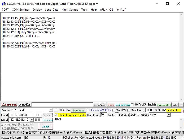 (03-02-2022 09:46)LevyKo schrieb: Hallo, Zuerst einmal ein Servus aus Österreich, ich bin heute dem Forum beigetreten... Ich bin daran meine JA-100 über die RS485 Schnittstelle JA-121T an HomeMatic IP anzubinden. Die JA-121T ist bereits in die Zentrale integriert. Da die CCU3 von der JA-100 entfernt ist, habe ich mir einen Waveshare "RS485 to Ethernet Adapter" angeschafft und die RS485 Leitungen entsprechend verbunden. Bevor es bei der CCU3 weitergeht, wollte ich die Verbindung testen. Über das SSCOM Tool von Waveshare habe ich eine TCP Client/Server Verbindung aufgebaut. Leider bekomme ich jedoch keine vernünftigen Daten gesendet. Beim Senden "HILFE" über das SSCOM, sollte von der JA-121T in weiterer Folge die zulässigen Befehle zurückgeben werden, leider detto nix (siehe Screenshot). Da der Thread schon etwas älter ist möchte ich mich noch nicht in weitere Details verlieren. Nun zur Frage: hat es in der Zwischenzeit jemand geschafft über RS485 und Ethernet-Adapter erfolgreich auf die JA-121T zuzugreifen? Über Antworten und Tipps wäre würde ich mich freuen, meine Augen sind vom vielen Googeln und div. Dokus zu lesen schon etwas trübe und meine Frau meint ich bin computersüchtig ;-) LG Peter |