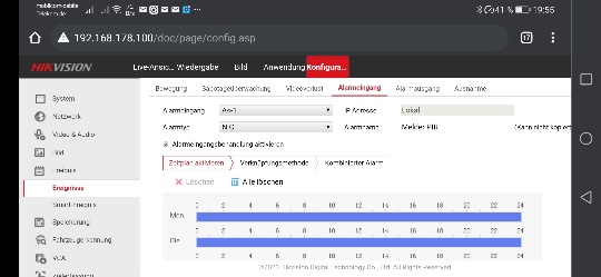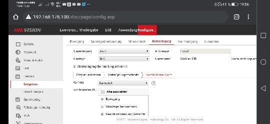 Der Zeitplan ist aktiviert (siehe Bild Zeitplan), bei Verküpfungsmethode ist u. a. eMail und Überwachungscentrum eingestellt (siehe Bild Verküpfungsmethode). Der eMail-Versand funktioniert einwandfrei, wenn nur Alarmeingang oder nur Bewegung eingerichtet ist. Im Reiter Kombinierter Alarm ist die Kamera ausgewählt und u. a. Bewegung markiert (siehe Bild Kombi-Alarm). Trotzdem wird keine eMail versendet und auch HIKconnect wird nicht informiert, so daß über die Apps HIK-Connect bzw. iVMS-4500 keine Meldungen empfangen werden. Kann mir jemand sagen, was ich falsch gemacht habe? |