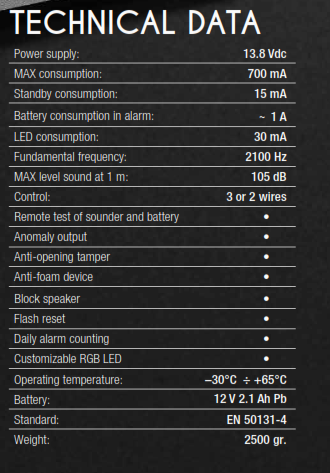 Soweit ich weiß hat sie hat lediglich ein Batteriemanagment nach EN50131, ist aber nicht EN50131 zertifiziert. ("Controllo batteria secondo normativa EN 50131")