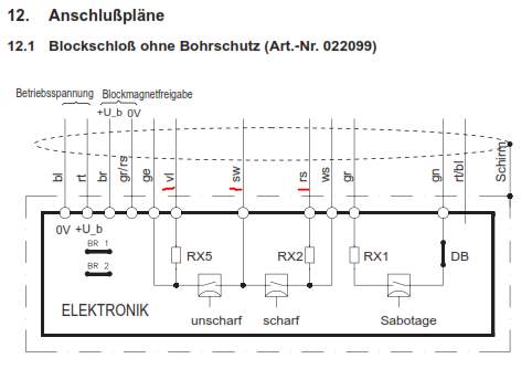 das mit ganz ohne Schlüssel würde ich noch einmal überdenken. Nach Stromausfall/Akku leer stehst Du draußen :-( Wir haben früher immer 2 Adern für die Notöffnung der Sperrelemente heraus geführt. Da kam dann extern 12 V dran wenn nichts mehr ging. Bitte auch daran denken das die externe Schalteinrichtung über die gepufferten 12V der Zentrale versorgt wird und das die Freigabe des Blockschlosses bei Anlage i.O. mit einbezogen wird. Die Zentrale selbst wird uns alle überleben ;-) Meine MMMP-1 von ABI ist von 1992. Viel Erfolg Andreas |