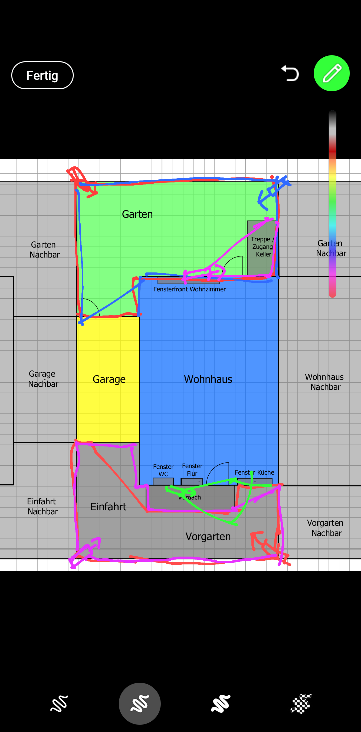 ich bin neu hier und so frech, direkt um eure Hilfe zu bitten. Wir sanieren gerade eine Doppelhaushälfte und spielen dabei mit dem Gedanken eine Videoüberwachung einzubauen. Welche Marke/Modell/System ist im Moment noch offen, lediglich die Verkabelung/Ansteuerung via IP+PoE ist für mich gesetzt. Ich habe auf die Schnelle eine "in etwa" maßstabsgetreue Zeichnung angefertigt und auch schon einmal mein Bauchgefühl bezüglich der Kamerapositionen eingefügt. Was sagt ihr dazu? Ergibt das Sinn? (Ist die Zeichnung überhaupt verständlich?) Gibt es Fallen oder Besonderheiten auf die ich achten sollte? Ich bin gespannt auf euer Feedback! |