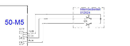 Was Du hier eingestellt hast, ist der Gesamtanschlußplan der 50-M5. Wie und wo die Adern am Internbedienteil (0)1264 selbst aufgelegt werden, ist damit nicht sicher geklärt, wobei Du noch die Steuerung (EIN-AUS) siehe nächste Seite (31) des Gesamtanschlußplans (oben) vergessen hast. ![]() Und genau aus diesem Grunde hatte ich ein Foto haben wollen