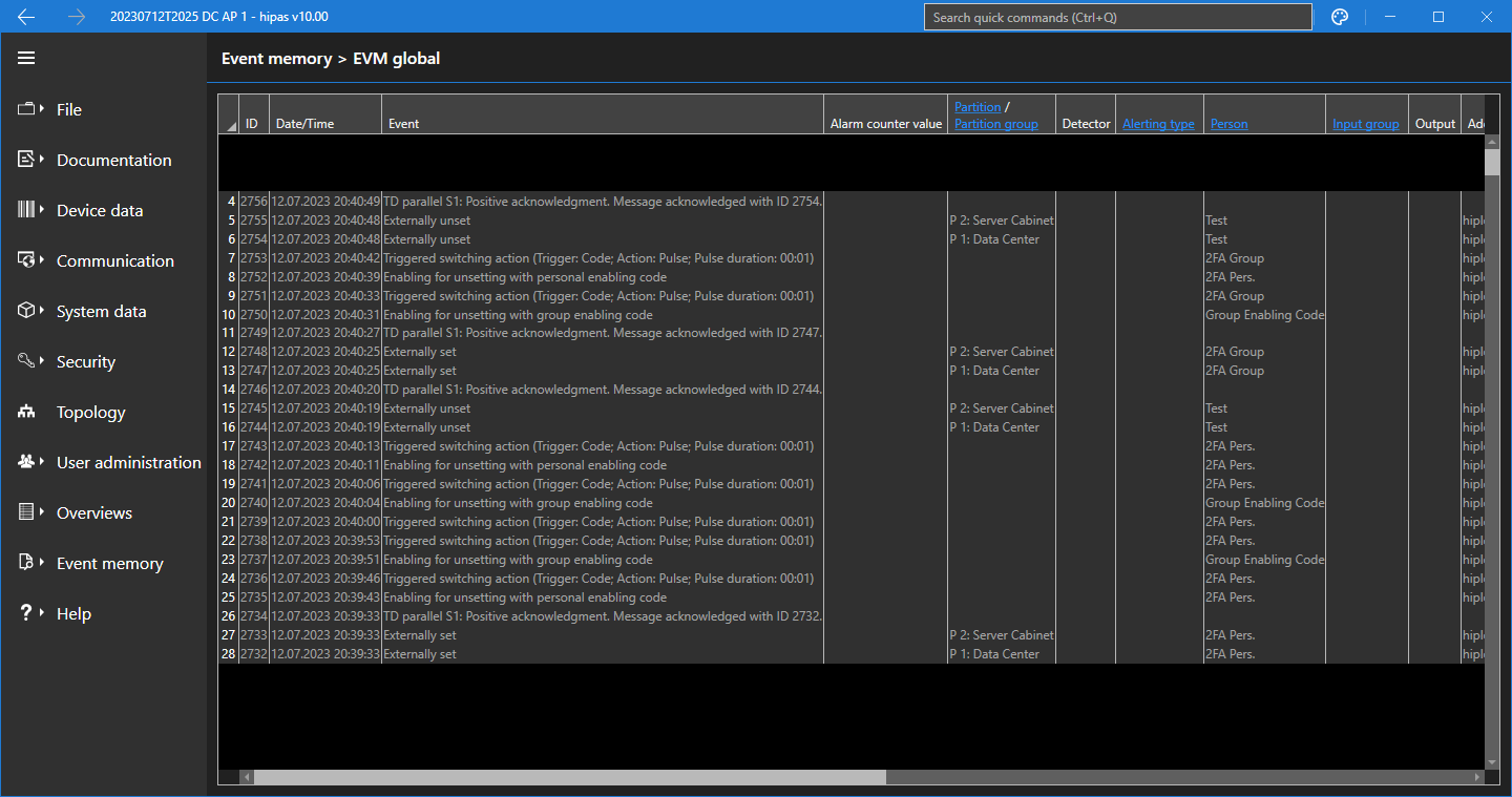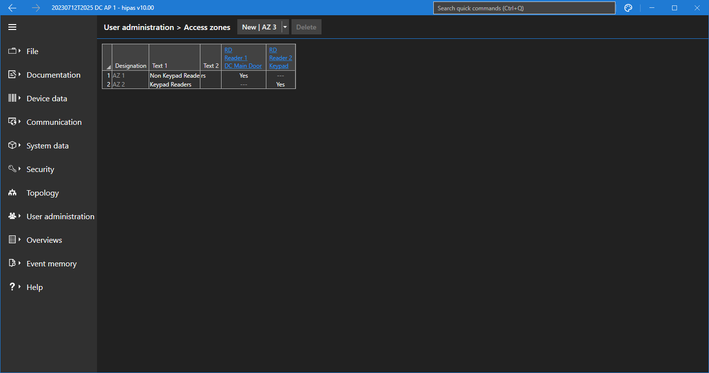 ich habe kürzlich nach Durchlaufen der hiplex Schulung meine erste hiplex erworben und befinde mich aktuell im Prozess der Familiarisierung mit derselben. Die Parametrierung ist bisweilen recht problemlos möglich, wenngleich sicherlich gänzlich different konzeptioniert als compasX. Einzig die zweistufige Unscharfschaltung bereitet mir Kopfzerbrechen. Diese ist wie folgt konfiguriert: - Die zwei an die Zentrale angeschlossenen cryplock Leser (1x R-MD, 1x R/K-MD) sind jeweils in eine Zugriffszone parametriert. - Zwei dedizierte Codegruppen, eine für die Freigabe der Unscharfschaltung (Tastaturcode), sowie eine für die Unscharfschaltung nach Freigabe (Transponder) sind ebenfalls parametriert. - Für die Freigabe-Codegruppe sind die Externe Scharfschaltung, Freigabe für Unscharf mit Personencode für den Z-Bereich / Alle SB, sowie testhalber eine Schaltaktion zur Verifikation, dass der Transponder korrekt gelesen wird, parametriert. - Für die Unscharf-Codegruppe ist Unscharf nach Personencode-Freigabe parametriert. Die Scharfschaltung funktioniert wie gewünscht, die Unscharfschaltung hingegen nicht. Das Ereignisprotokoll weist folgende Einträge auf: Code: Zeit Pfad EreignisDer Transponder wird folglich korrekt gelesen, die Freigabe erfolgte zuvor ebenfalls, jedoch schaltet die Anlage nicht unscharf. Ich bin hier doch allmälig ratlos und wäre den Forenmitgliedern um Unterstützung doch wärmstens verbunden! (11-07-2023 23:12)dilucide schrieb: - Für die Freigabe-Codegruppe sind die Externe Scharfschaltung, Freigabe für Unscharf mit Personencode für den Z-Bereich / Alle SB, sowie testhalber eine Schaltaktion zur Verifikation, dass der Transponder korrekt gelesen wird, parametriert. Der Block war dann wohl in völliger geistiger Umnachtung verfasst... Korrekt lautet dieser: Die mit dem Tansponder assoziierte Codegruppe ist mit der Externen Scharfschaltung, Unscharf nach Personencode-Freigabe für den Z-Bereich / Alle SB, sowie testhalber einer Schaltaktion zur Verifikation des korrekten Lesens des Transponders parametriert. Die mit dem Freigabecode assoziierte Codegruppe hingegen wurde ausschließlich mit Freigabe für Unscharf mit Personencode parametriert. |