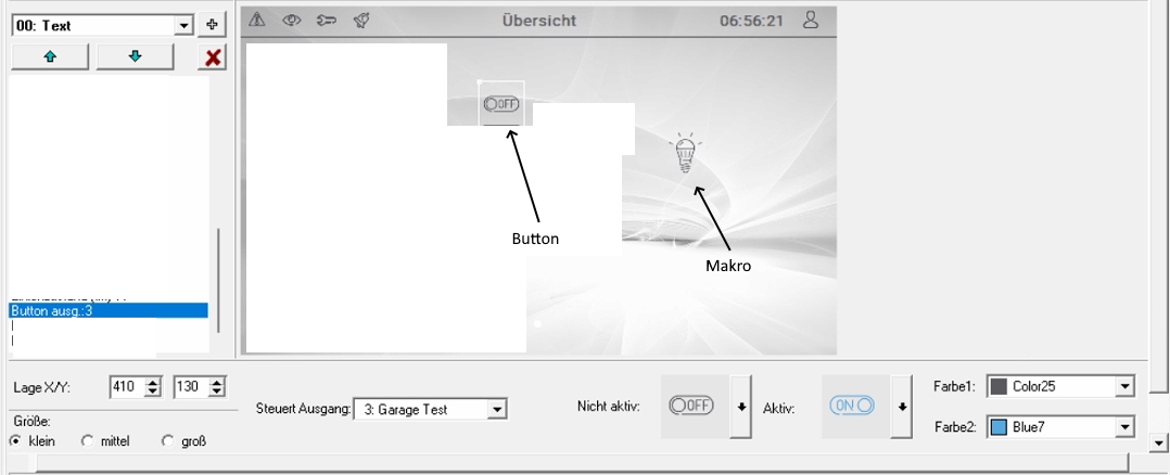 ich habe da mal wieder ein Problem ![]() Ich möchte gerne über das TSH mein Garagentor öffnen. Irgendwie bekomme ich es nicht hin einen Ausgang zu schalten. Ich habe es über einen "Button" und ein "Makro" versucht, leider ohne Erfolg. Ich habe mal meine Parametrierung angehangen. Ich weiß nicht so genau, welchen Ausgangstyp ich mit welcher Parametrierung einstellen muss. Vielleicht kann mir da einer einen Denkanstoß geben. Gruß Dirk |