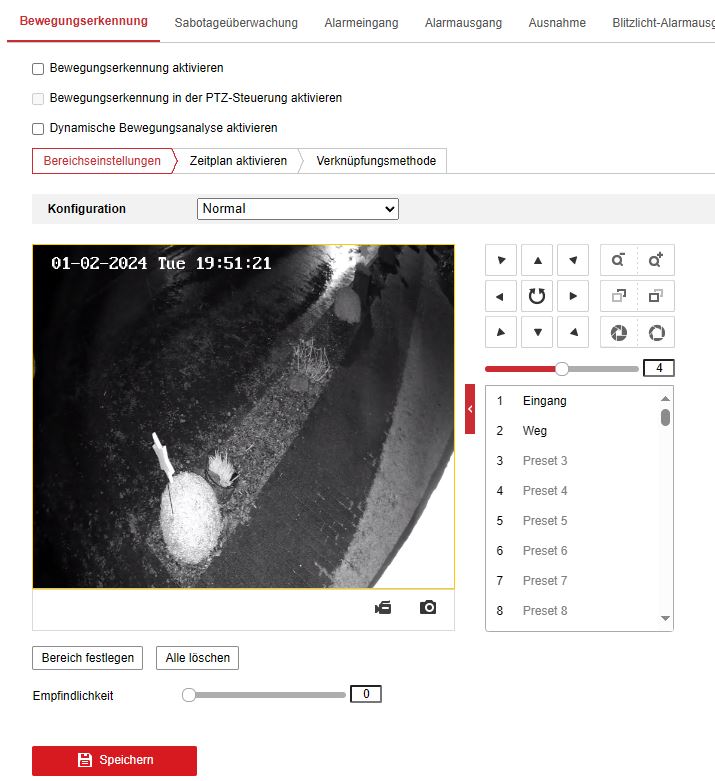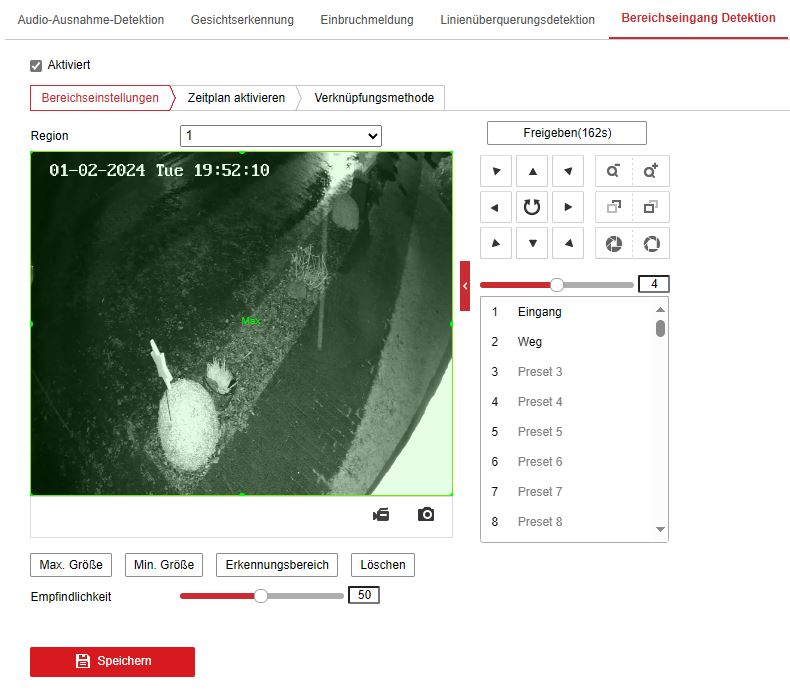 @ssb-security: Ich habe auf Werkseinstellungen zurückgesetzt und dann "nur" Preset 1 und Preset 2 eingestellt und dann Bereichseingang Detektion aktiviert. Ein paar Screenshots habe ich angehängt.
