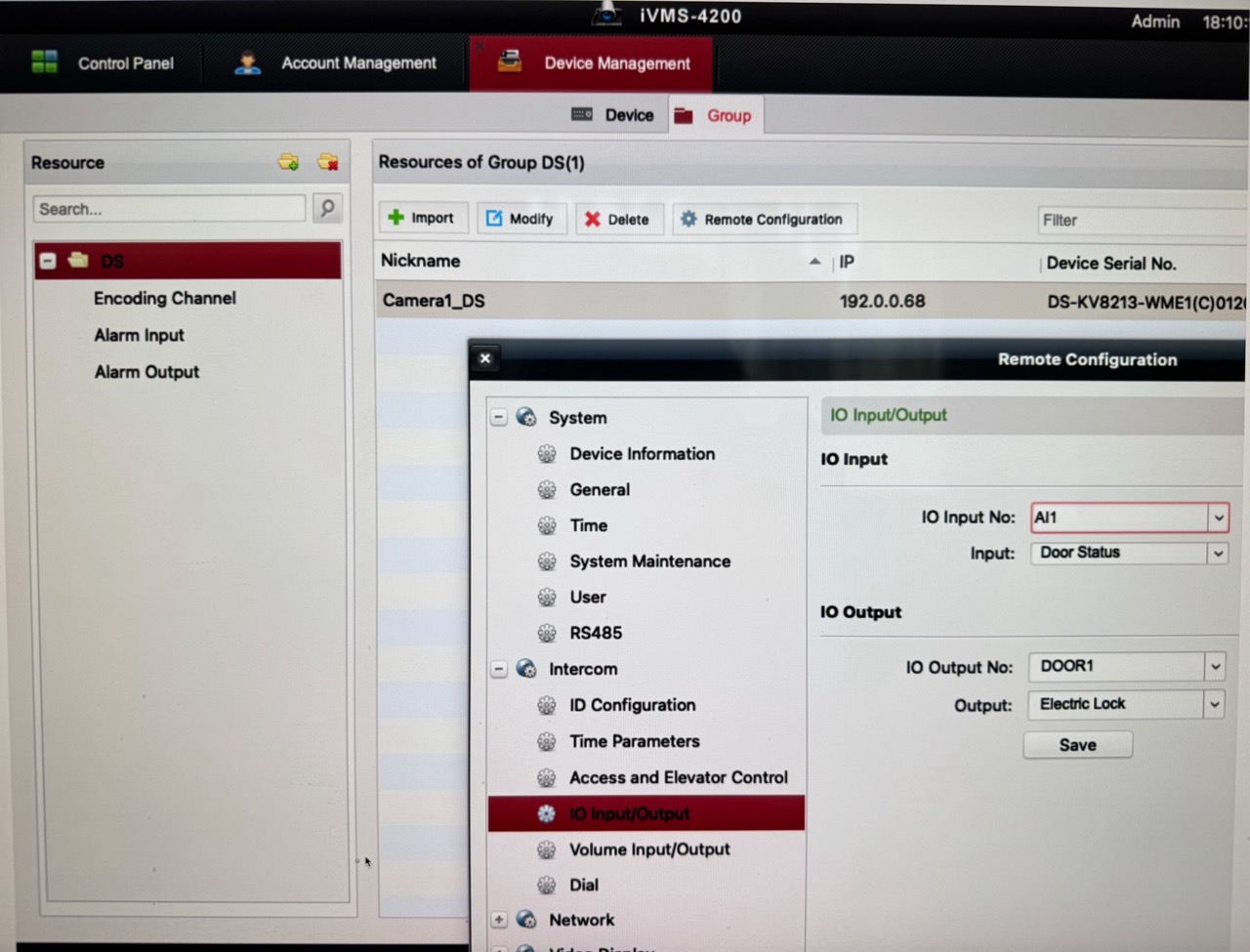 ich habe eine Hikvision DS-KV8213 und als innenstation zwei DS-KH6110-WE1. Nun habe ich keinen Windows PC, sondern eine Mac. Die Softwareversion iVMS-4200 für Mac hat leider keinen ersichtlichen Menüpunkt, in dem man den Kartenleser konfigurieren kann, oder zumindest finde ich nicht passendes. Darum bin ich auf den integrierten Webserver der DS gegangen und konnte da zumindestens die Karte registrieren (denke ich, denn es hat zwei Mal gepiept, als ich die Karte rangehalten habe). Allerdings lässt sich die Tür nicht damit öffnen.Von der iOS-App aus und auch von der Innenstation lässt sie sich öffnen. 1. Kann man die Karte doch vom Mac bis iVMS-4200 anlegen und wenn ja, wie geht das? Im Netz finde ich nur Anleitungen für Windows. 2. Wie bekomme ich die Tür-öffnen-Funktion alternativ via Webbrowser hin? Ich hoffe, das mir jemand helfen kann… mein Verkäufer kann das leider nicht :-) Hier noch ein Bild von der Mac-Version der iVMS-4200. Noch eine Info: im Web-Interface kann ich auch den Türöffner „umkehren“, so dass er dauerhaft offen ist. Alonso eine Verbindung gibt es. |