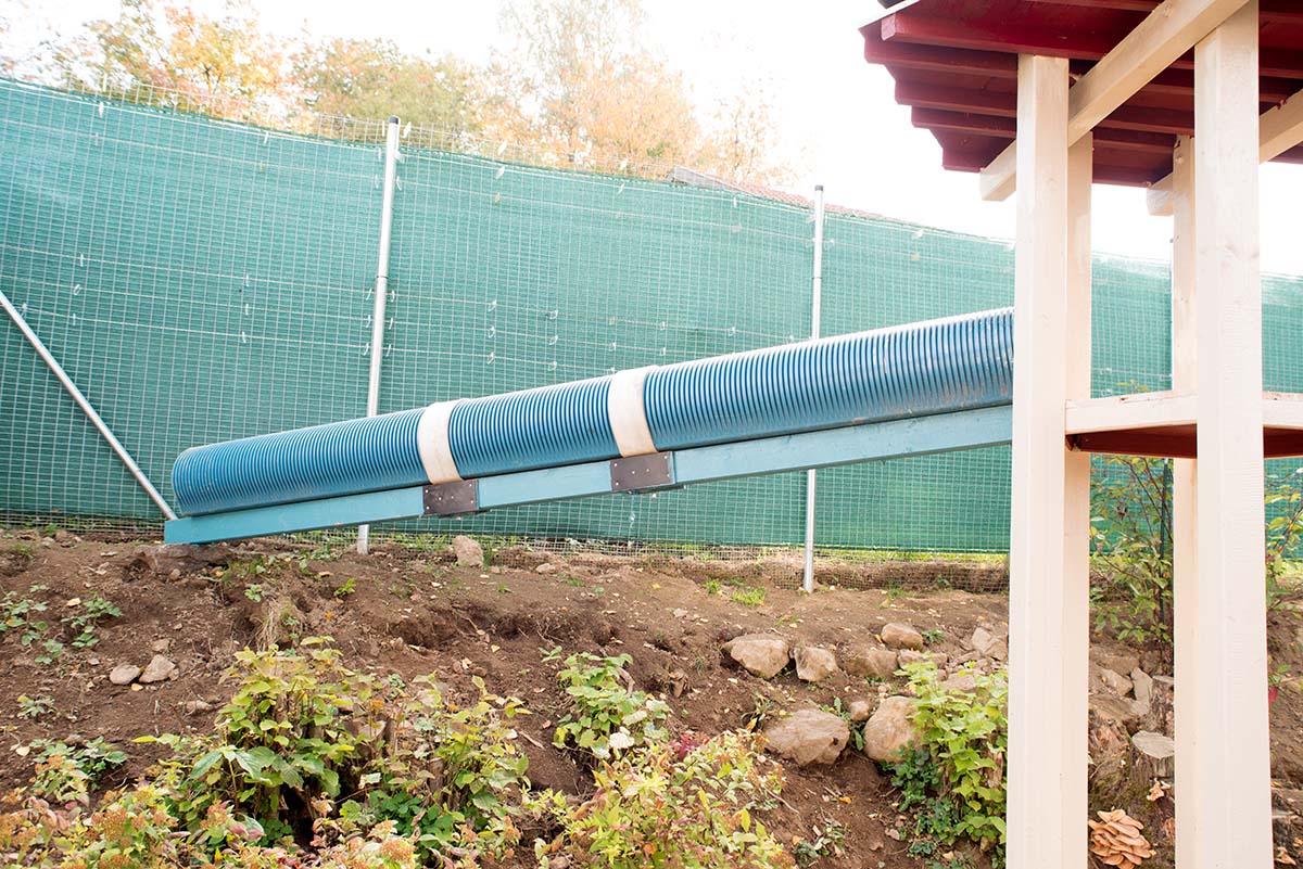 Wir haben weiter überlegt und ich glaube, die 180 Grad teilen wir besser auf zwei Kameras auf, dann wäre das eine Gehege von zwei Seiten einsehbar.