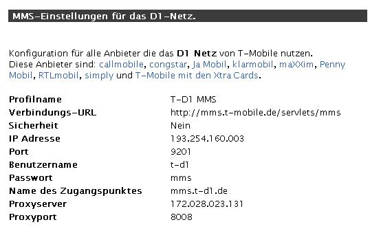 Ich haben eine GSM KAmera, und möchte mit einer t-mobile xtra Card mms versenden. Ich benötige folgende MMS Parameter Gateway IP: Gataway Port: APN: Benutzer: PAssword: Mit einer D2 Karte klappte der MMS Versand Mit der D1 noch nicht. Kennt jemand die aktuellsten MMS Parameter? Danke und Grüße jan |